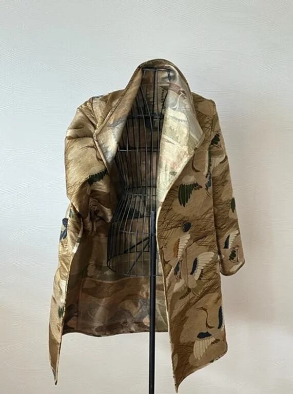 大胆な浴衣反物で小袖文化のおしゃれ感をイメージしたブラウスジャケットセットの季節です‼